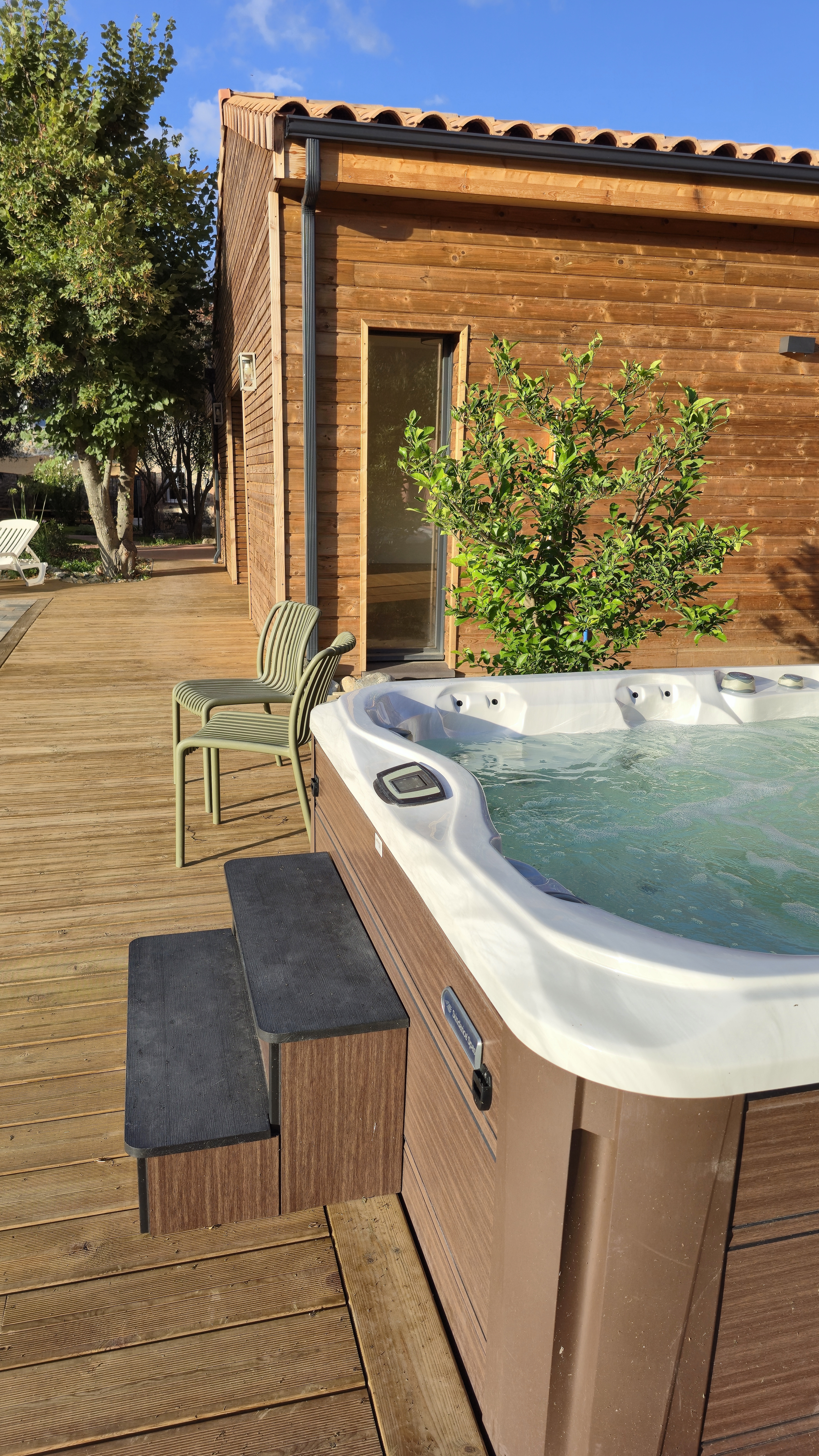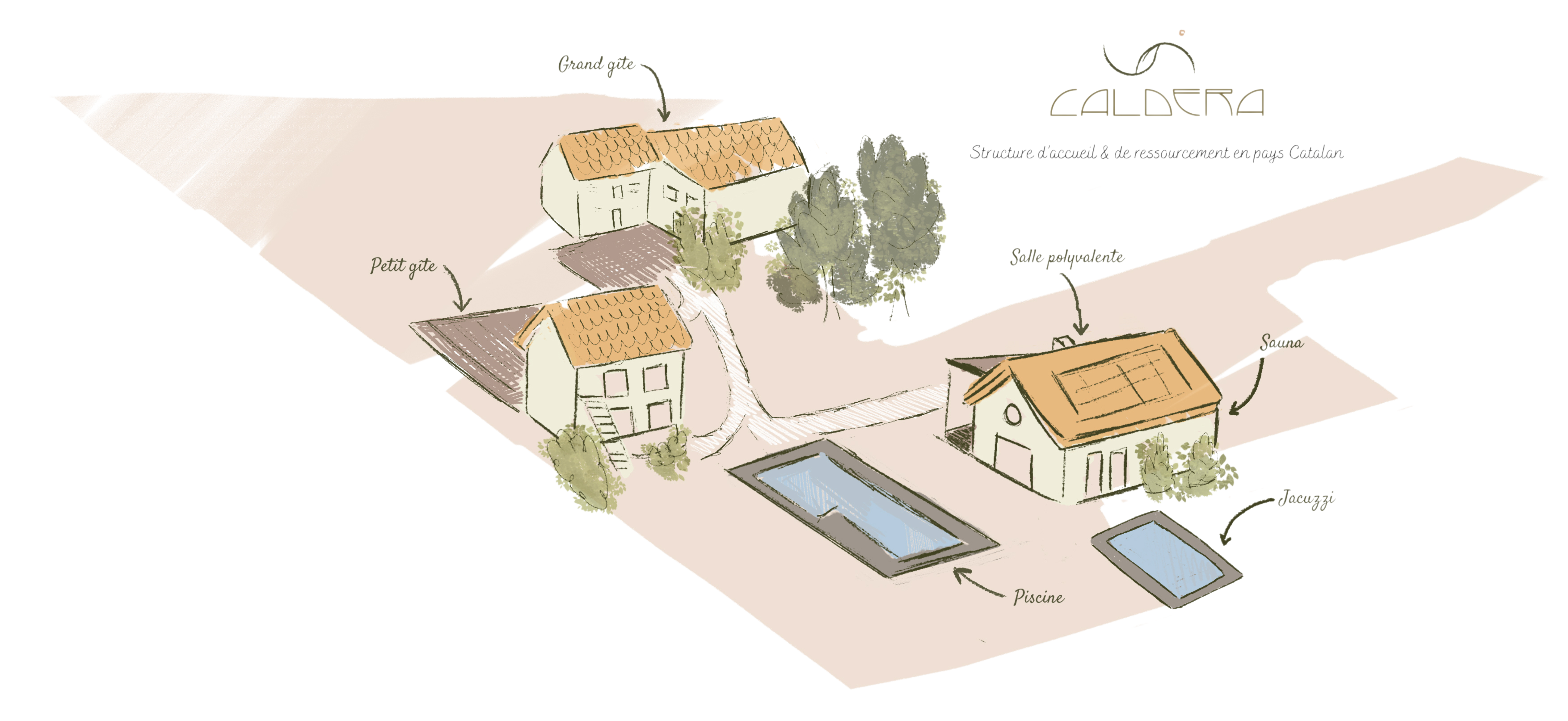 Caldera offre plusieurs espaces à votre service pour un séjour sur mesure : une grande salle de 120m², un espace bien être avec Sauna et Jacuzzi, une piscine, un jardin méditerranéen vu sur les montagnes